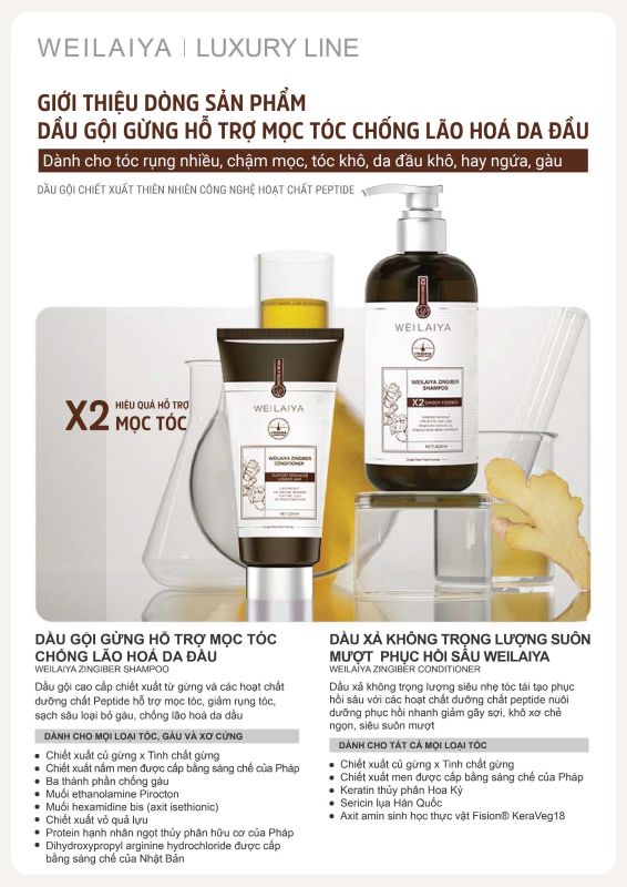 Weilaiya là thương hiệu quốc tế đầu tiên đưa chiết xuất gừng Vân Nam vào trong dầu gội hỗ trợ giảm rụng tóc.